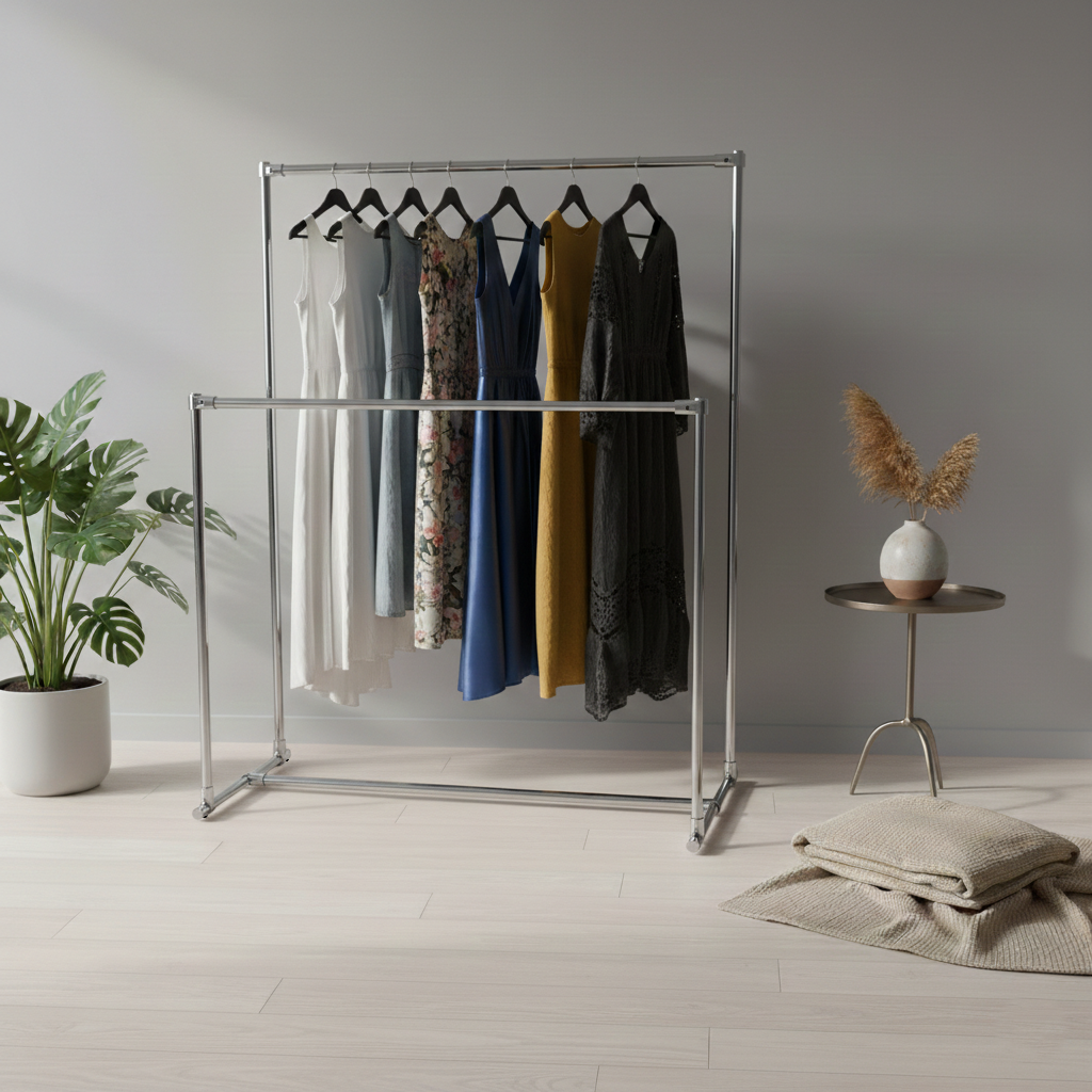 Podwójny stojak na ubrania garderoba metal chrom