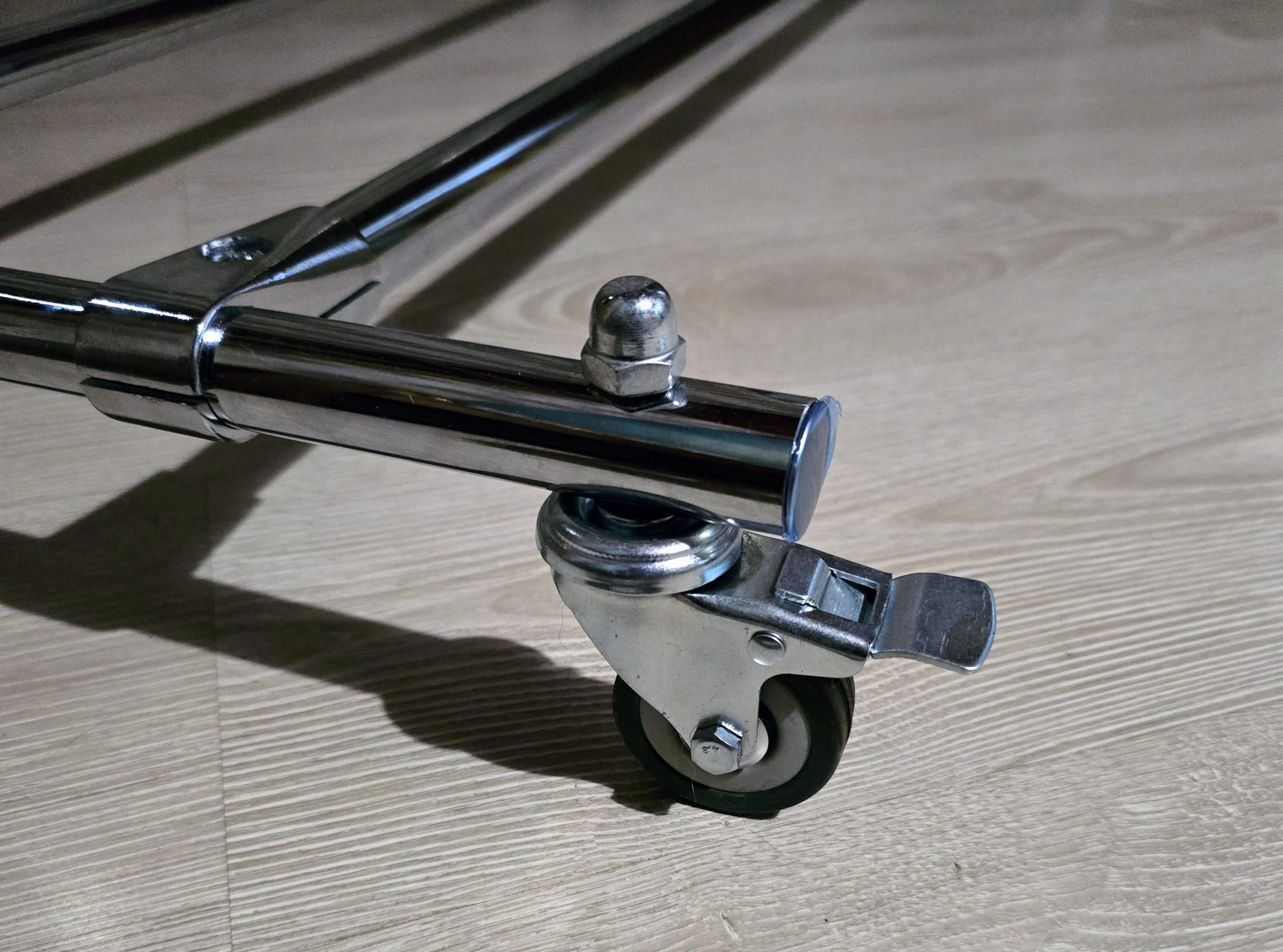 - Kółka przykręcone do rury nakrętką kołpakową co poprawia estetykę.
