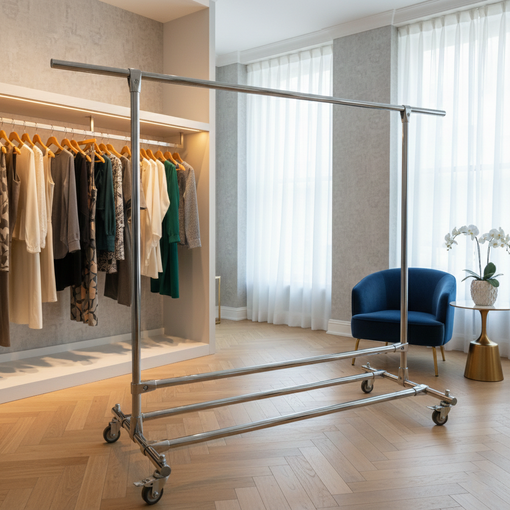 - Uniwersalne zastosowanie: To niezastąpiony element wyposażenia dla właścicieli sklepów odzieżowych, projektantów i stylistów. Świetnie sprawdzi się również jako funkcjonalny zamiennik tradycyjnej szafy w mieszkaniu.